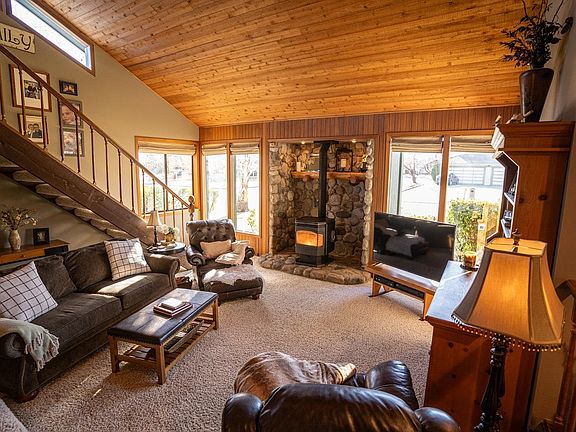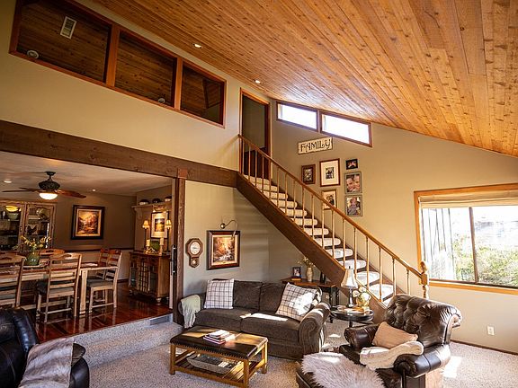 Custom home designed by a well respected architect, this home sits on the corner of a cul de sac with the garage at the back for function, spacious parking and curb appeal. This home has had one owner, that has built and meticulously maintained this home. The floors are a mix of gorgeous wood floors and carpet in the living room and bedrooms. The kitchen was remodeled with updated cabinets, counter tops and fixtures. Look out to the Mountains from the kitchen sink. Vaulted ceilings with a comfortable but elegant feel in the living room. Loft above living room for an office, craft area or bonus room. Enclosed patio room with heating and cooling makes for a perfect indoor/ outdoor living. The backyard is fully landscaped, with flower beds, patios and lighting offering a zen like retreat. For the auto enthusiast or craftsman this home is equipped with a 948 sq ft fully finished, insulated garage and a 652 sq ft workshop, solar panels are owned and not leased.