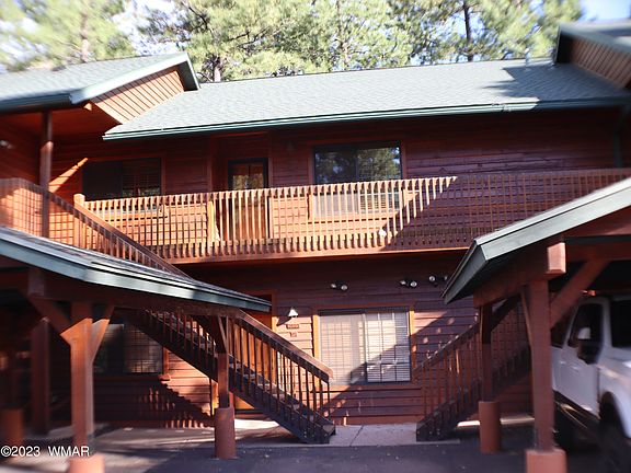 This immaculate 3 bedroom 2 bath cedar sided Condo in the tall pines offers 1,716 sq feet of living area inside this gated condo association. Being on the 2nd level affords views from the front and while enjoying the covered private back balcony not to mention nobody above you. The wood-accented vaulted ceiling in the great room gives the rustic mountain cabin feel. The split bedroom floor plan is very friendly. You'll appreciate & enjoy the stone-faced gas-log fireplace in the great room. The kitchen is open and lends itself to ease of entertaining. Condo comes furnished less owner's personal effects. The condo is turnkey and is priced below market value. A new roof has recently been installed by HOA. It really is beautiful.