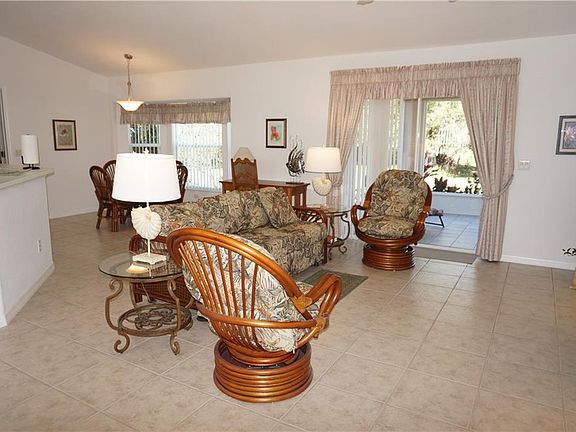 Impressive 3 Bedroom, 2 Bathroom home with attached 2 Car Garage located in the desirable deed restricted community of DEEP CREEK. ***SOLD TURNKEY FURNISHED!*** Private GREENBELT view. Flood insurance is not required for this property. This light and bright home features an open and split bedroom floor plan with Great Room, separate Dining Room, eat in Kitchen with island, Inside Laundry and screened Lanai with tile floor. The Maser Bedroom suite offers a walk in closet and private bathroom with tub/shower combo. There are two additional well appointed bedrooms. Other features include built in entertainment center in Great Room, tile flooring in the living areas, cathedral ceilings,inside laundry room with washer, dryer and cabinets, security system, pull down attic in garage, rounded corners. This home is minutes from Golf, Deep Creek park, shopping, dining, I-75, entertainment and short drive to medical care, waterfront parks, boat ramps and fishing piers. Easy drive to Gulf beaches.This is a great home for a family or those expecting winter visitors!