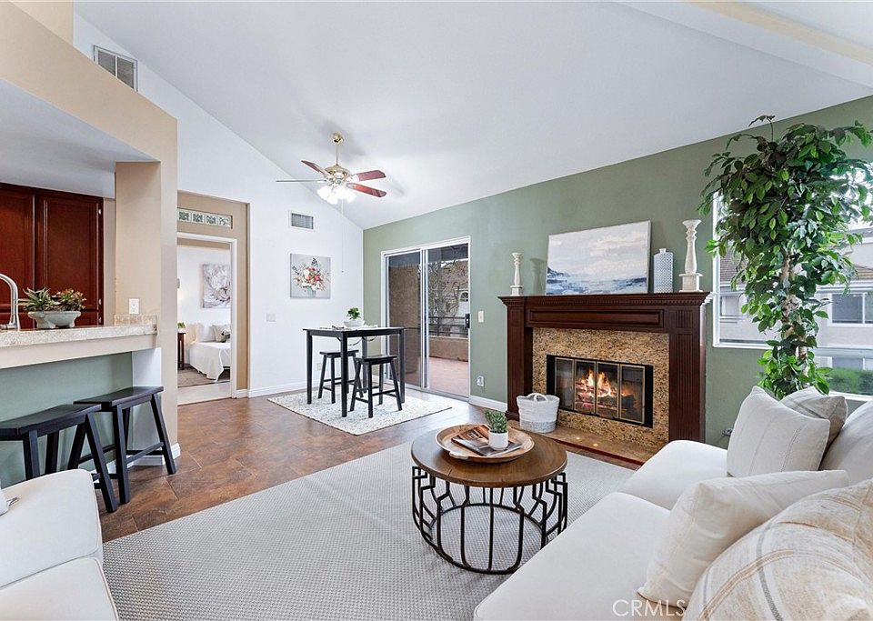 Welcome to 25171 La Jolla Way #C, this desirable end unit in the Expressions Community of Laguna Niguel. This unit features 1 bedroom plus a loft with 2 bathrooms. This tri-level has an open floor plan with high ceilings and lots of natural light. The living room/dining room has a fireplace and bar seating. The main bedroom features a ceiling fan, ensuite bathroom and access to the large patio. The master bathroom has been updated with dual sinks. This unit has an attached garage and laundry conveniently located inside the unit. This home has abundant storage. The HOA includes water and trash, along with access to two community pools and hot tub.