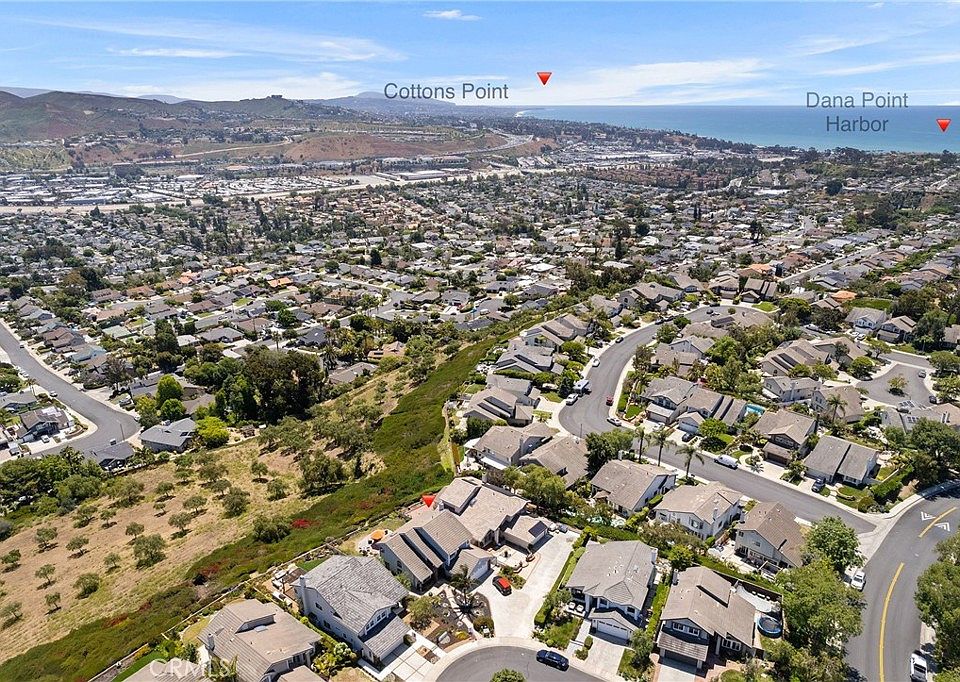 OCEAN VIEWS! Location, Location, Location. This home is on a cul de sac in the desirable Dana Woods Community. This neighborhood is immaculate, friendly and safe. Views of the ocean in Dana Point all the way to Cottons Point in San Clemente. Looking East you will see Saddleback Mountain and the valley of San Juan Capistrano including the city lights at night. The Ocean breeze coming through this house is fantastic. Very few homes in the neighborhood can boast this vantage point. No one behind you, just the endless view. You will enjoy Fireworks shows all around to delight your friends and family. Enter the double doors to a sweeping staircase. The home has high ceilings and tons of windows to bring in the natural light. Freshly painted throughout. Granite countertops in the kitchen with stone backsplash and stainless appliances and walk in pantry. The master bedroom is oversized. The owners chose to turn 2 bedrooms into 1 very large master. It is large enough to split into two bedrooms or master bedroom with office/sitting room or retreat. A clean slate, come in and make it your own. The community HOA features pool, parks, bbqs and playgrounds.