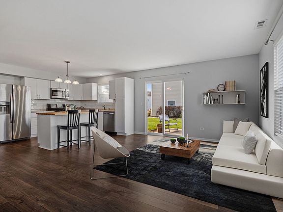 Welcome to this adorable and meticulously maintained 2 Bedroom, 1.5 bath end unit townhouse in the Leighlinbridge subdivision of Manhattan! Step into a freshly painted interior featuring modern, neutral tones that perfectly complement the new carpet and vinyl laminate flooring (2021). The spacious eat-in kitchen boasts a large island with extra storage, sleek stainless steel appliances, and ample room for gatherings. The light-filled living room opens to a concrete patio, ideal for relaxing or entertaining. Upstairs, enjoy the convenience of 2nd-floor laundry and a full bathroom. The primary bedroom impresses with a walk-in closet featuring a window for natural light-a cozy retreat at the end of the day. Other highlights include a 2-car garage, cleaned ductwork and vents (2022), and HOA benefits that cover exterior maintenance, landscaping, snow removal, and access to serene ponds, walking paths, and a playground. Conveniently located near schools, shopping, and interstates I-80, I-55, and I-355, this home offers easy access to everything you need. All that's left to do is move in and make this townhouse your own! Don't miss your chance to call this gem home!