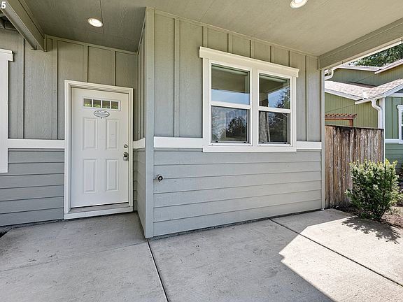 Welcome to this charming one-story home nestled in picturesque Veneta—just a short drive from Eugene. Backing up to majestic pine trees, this property offers a rare blend of privacy and that peaceful, country feel right in your own backyard. Inside, you’ll find an open-concept floor plan with tall ceilings and an abundance of natural light, thanks to the plentiful windows. The kitchen features stainless appliances and a dine in area opening to the living room with slider to the back patio; and a generously sized formal dining area. Dedicated laundry room - washer and dryer included! Heat pump & furnace replaced in 2020. Primary bedroom with sizable en-suite bathroom and dual vanities. The back patio is perfect for lazy evenings, and the side and backyard provide a blank canvas for your unique vision. Underground sprinklers for ease of mind when it comes to summer watering! Whether you're looking to downsize, purchase your first home, or just escape the bustle of city life without straying too far, this home offers the best of both worlds—modern convenience in a tranquil, natural setting. Seller offering a $5,000 carpet allowance to make the space your own!