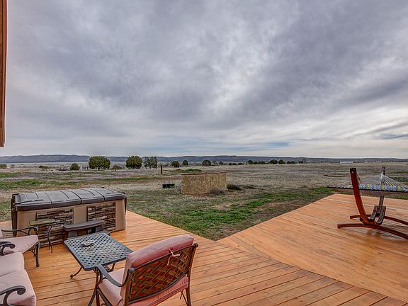 Views in EVERY direction from this home that has access to a private airport. Recently updated, this home's kitchen offers upgraded Stainless appliance package including refrigerator, granite countertops and gas range. Large master suite has outside access, jetted tub, large walk-in shower, walk-in closet and pot shelves. Over 700 sqft of deck that overlooks 5 acres of land. Outstanding 35 GPM well. Additional amenities include tile in all wet/traffic areas, beamed vaulted ceiling, great room with wood burning fireplace, large guest bedroom & bath, oversized laundry room with sink, dining area, separate living room, loft, plus an open office area/potential 3rd bedroom!