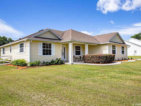 Lovely move in ready country home on 1 acre just outside of High Springs. You'll find this well cared for 3 bedroom 2 bath home a perfect place to call home. This light and bright open concept floor plan has hardwood floors in family room, dining and kitchen area. The kitchen boasts of ample custom wood cabinets with lots of storage. Pantry cabinet with pull out drawers for easy access. Plenty of counter top space that any accommodate any chef for prep area. A bar top for additional eating area, eat in kitchen nook and formal dining room. Enjoy the stone gas fireplace in the great room. Large master bedroom and walk in closet. Master bedroom also has a great alcove that makes a perfect office area. Luxury master bath with double sinks granite counter top ,soaker tub and newly tiled walk in shower. Second bath has jetted tub/shower combo and two additional bedrooms. Laundry is no problem in the spacious laundry room. Covered lanai and 1 acre of space in the back yard for a garden or pool. Call today for your appointment to view this lovely home.