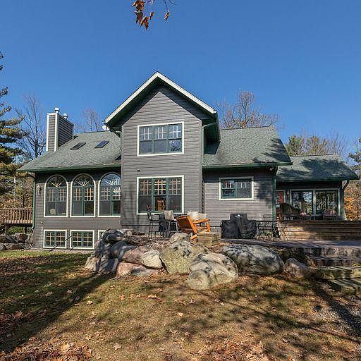Welcome to paradise! This private retreat offers frontage on both Hemlock lake and Red Cedar Lake. Situated on a peninsula with easy access to both docks, this beauty is sure to please! This 4 bedroom home offers maple wood floors, hickory cabinets in spacious kitchen, large great room with soaring vaults, fireplace, oversized windows to take in the lake views. Main level primary bedroom en suite, laundry, power room and lovely sun room completes this level. Upper level boasts 2 large bedrooms, full bath and office. Lower level brings you to the generous sized family room complete with fireplace, windows taking in lake views, billiard area, bedroom, bath and bonus room. The detached garage is oversized and offers an additional guest space complete with kitchenette, bath and patio doors to deck. One visit to this turn key beauty and you will want to make it yours!
