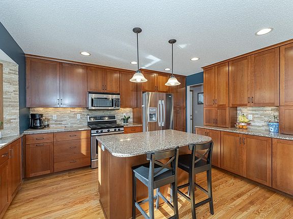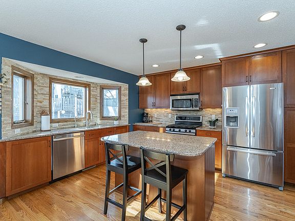 The heart of this multi-level home in a quiet NW neighborhood is the kitchen, and you're going to love the stainless appliances, solid-surface countertops, breakfast bar island, lots of cabinetry, and large dining area – all under a vaulted ceiling! With access to the massive deck in a fenced backyard, the main floor will be your social center this summer! The vaulted ceiling leads to an open upper-level living space featuring a custom-built media wall that’s as beautiful as it is functional. Sharing this level are two bedrooms, including the large primary. The lower-level family room is also open to the main floor and feels just right for movie night by the gas fireplace. Two additional bedrooms and the laundry room are close by. The finished basement has multiple, separated areas to be used for purposes such as a workshop, home gym, storage and more. A custom-crafted feature is included in almost every room, come find them all and imagine yourself living in this beautiful home!