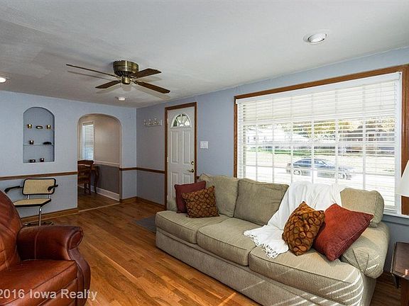 What a Charmer!!! Rounded brick stairway welcomes you into this move in ready home. Nice sized living room with beautiful hardwood floors, recessed lighting and arched doorways. Updated kitchen with newer cabinets, countertop, tile backsplash, wood floors, stove and microwave. Other included appliances are a refrigerator and dishwasher. Large deck off kitchen with benches overlooking fenced backyard. Updated hall bath with newer vanity, stool and tub/shower. Nice master bedroom with good sized closet. 2nd fafamily bedroom also has good sized closet. Both bedrooms have hard wood floors as well. Basement has some finish, perfect as 3rd bedroom or a family room. Walk out to back yard. Laundry room and storage with sump pump. Exterior updates include siding and windows. 2 car detached garage. Convenient location close to schools, shopping and freeway access.