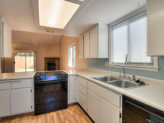 Walk to shops and restaurants from this bright and sunny townhouse. It has 2 bedrooms, 2 bathrooms and a large 2 car garage. Enjoy the lilac tree in the private yard with forever green lawn. Kitchen is open to the living room and cozy fireplace. Super low HOA yet well maintained.Such a great second home or first time buyer home. See it before it's gone!