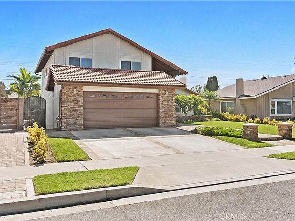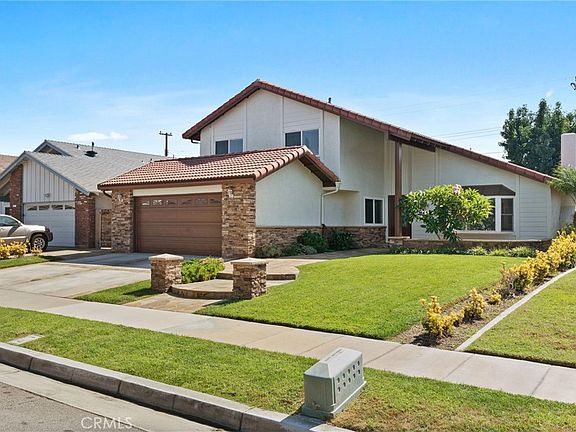 Villa Park School District! This is a highly sought-after Presidential tract home in the city of Orange! 2518 E Garfield Ave is a modern gem featuring 4 spacious bedrooms and 3 remodeled full bathrooms all with luxurious upgrades. Upon entry this turn-key home immediately welcomes you into the formal living and dining area that offers immense natural lighting and luxury brass sconce, plus a warm ambiance from fireplace to original maple hardwood flooring. Cozy up in the oversized family room with views of the backyard pool retreat and convenient kitchen access. Upgraded kitchen features antique white cabinets with stainless steel fixtures and appliances plus gray marble countertops with ample counter space. Main floor also includes a dedicated laundry room, 1 private bedroom and full bath which is absolutely perfect for guests. Just past here there is convenient direct access to the garage. Upstairs you will find 3 of the 4 bedrooms, including a large master bedroom that offers not 1 but 2 walk-in closets! and an En-suite bathroom. Entertain or relax in the backyard pool oasis with shaded patio cover perfect for dining under the stars. Additional features include dual-paned windows, central heating and air and recessed lighting throughout. Conveniently located to the 91/55/22 freeways/toll roads, historical Old Town Orange, grocery stores, nail spa, and restaurants. This home has everything you want and more!