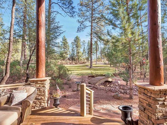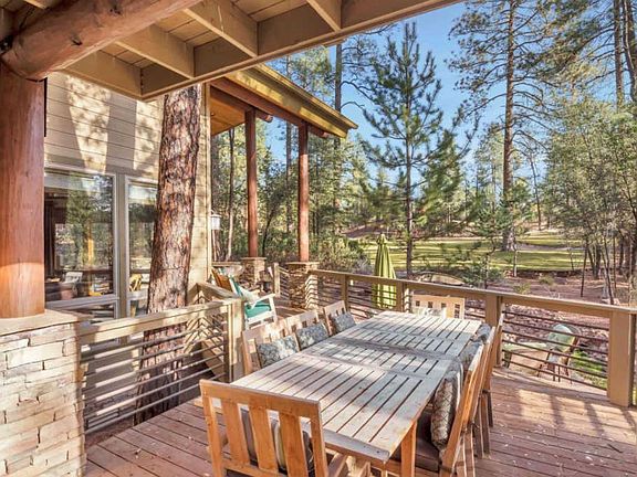 Come home to the perfect ?Turn-Key? furnished/decorated mountain retreat, located on a flag lot so that its uniquely nestled privately within the golf course at the Chaparral Pines golf community! This home feels like the proverbial ?cabin in the woods? yet is securely located within a gated community with first class amenities ? golf course, clubhouse, fitness center and recreational facilities including swimming pools, playground, dog park, tennis courts and sand volleyball. This stately mountain home has an open floor concept and features vaulted Tongue & Groove ceilings with log pole beamed accents, wood floors, a majestic wall of stacked stone with fireplace with wood built-ins. The expansive kitchen is sure to be the gathering place when entertaining -- it boasts sleek cabinetry, stainless steel appliances, an island with pendant lights, breakfast bar and eat-in kitchen. Outside is extensive outdoor living with multiple layers of covered and uncovered decking surrounding most of the house, giving view corridors to various views and beautifully shaded by massive Ponderosa Pines. The bedrooms are privately situated by ascending a half flight of stairs to the spacious master suite with its own gas fireplace, sitting area, private balcony and en suite bath with dual vanities, garden tub and snail shower as well as its own door to a private patio area. Another one half flight of stairs take you to the second guest bedroom with its own bath and the final flight of stairs leads you to a gorgeous and extremely private Guest Master Suite with large living area, en suite bath and private balcony. If you would like to enjoy mountain living at its finest and move in with just a toothbrush, you have found your home!