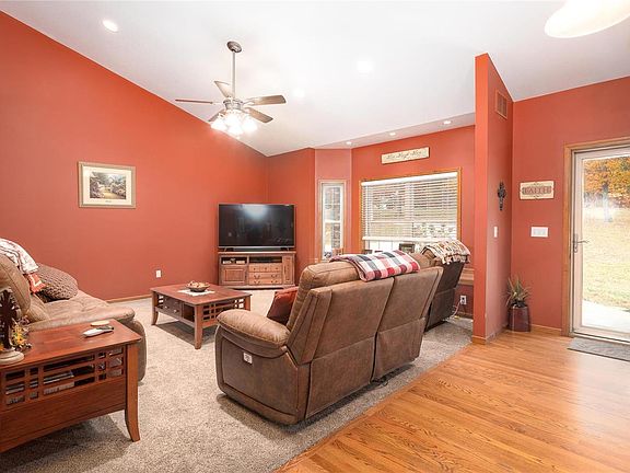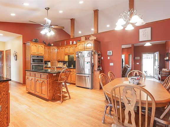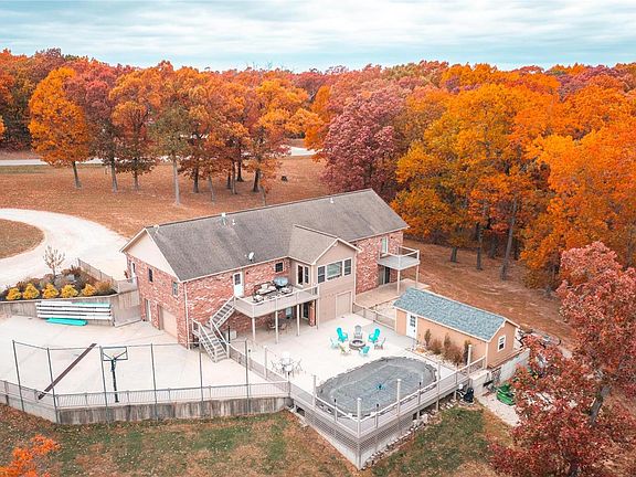 Gorgeous brick home on 7.37 Acres in Fatima School district only 5 miles from 63 Highway. This spacious 3 Bed, 3 Bath ranch home offers 2212 sq ft of living on the main level and an additional 2298 sq ft of finished lower level. The main level features hardwood floors, custom cabinetry with stainless appliances, cathedral ceilings, sunroom with a view, and two car garage. The basement is made for entertaining with second family room, office, and full kitchenette. Walk out to one of several areas perfect for outdoor living including the large concrete patio with pool-side firepit, covered front porch, two back decks and concrete basketball court. A third garage in the lower level is great for additional vehicles or boat but is large enough to be a nice work shop. A nice utility building is great for yard and pool equipment storage