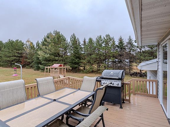 Welcome to the Northwoods! Country living in an area of recreational abundance, but 10 minutes from town. This property is just down the road to the Hiawatha walking and snowmobile trails plus many miles of ATV marked access to roads and trails. Drive up the driveway and enjoy the 2 apple trees, 2 plum trees and a beautiful crab tree. This tranquil property boast a full kitchen and spacious dining and living area. Also includes an entertaining deck overlooking the 1.57 acres of land and has an attached 2 1/2 car garage with a 30x40 detached garage. There is one bedroom with a walk-in closet on the main level next to the spacious full bathroom and 2 bedrooms on the lower level with a full bathroom with a tiled shower and jacuzzi tub. Laundry room is on the lower level and also an area that provides a large open family room and rec area. This property is a must see!