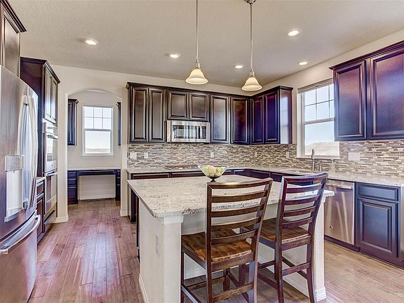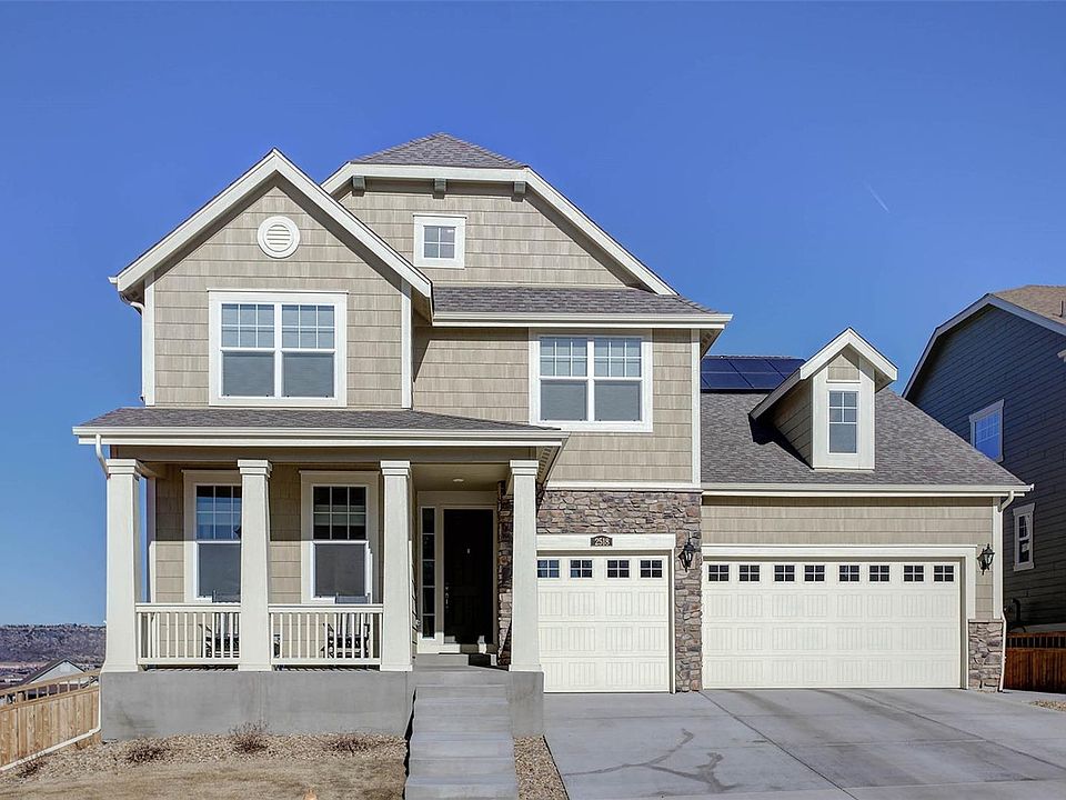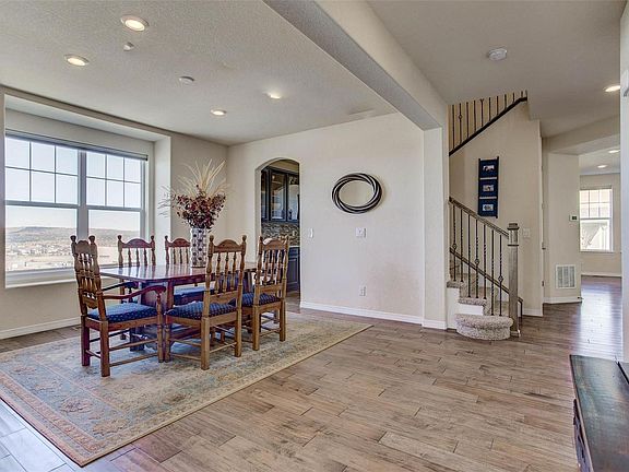 Barely lived in 2-story in The Meadows. Situated high above it all, this home has a ton of natural light and views from almost every window! The open floorplan features a main level study, spacious great room, upgraded gourmet kitchen and a pantry you have to see to believe! Plus, all the upgrades - granite counters, stainless appliances and engineered hardwood flooring throughout the main level. Upstairs, there's a generously sized master suite plus two bedrooms that share a Jack & Jill bath and a 4th bedroom with its own en suite bathroom. That's not all. Prepare to relax in the second floor media/rec room with vaulted ceilings and plenty of room for movies and games. The unfinished basement offers room to expand. Head outside and enjoy the covered deck and what Castle Rock is best known for - the views! Very close to the new Taft House pool and fun center, The Grange and future Apex P-8 Community School. Information is considered highly reliable but cannot be guaranteed.