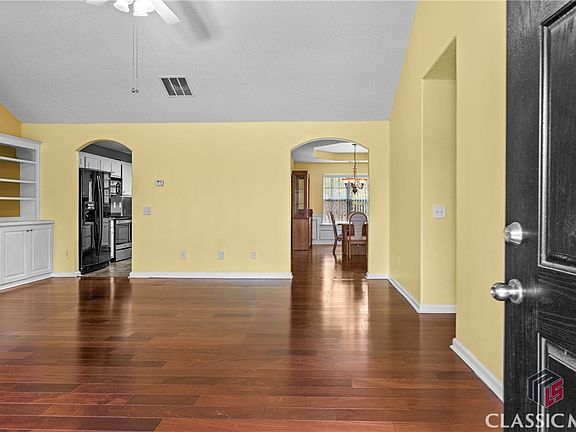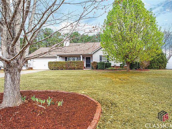 Introducing this charming 4 bedroom, 3 bathroom ranch home nestled in the heart of Statham. Boasting vaulted ceilings, the spacious layout invites you in with a warm ambiance. The large kitchen offers abundant workspace, perfect for culinary enthusiasts. Adorned with built-in bookshelves surrounding a cozy fireplace, the living room exudes comfort and style and is flooded with natural sunlight. Hardwood floors flow throughout the main living areas, and the formal dining room has wainscoting, adding timeless elegance. The large primary bedroom boasts trey ceilings, a huge walk-in closet and an en-suite with separate vanities and a soaking tub. Step into the sunroom at the back of the house for a serene retreat, overlooking the private fenced yard. With all appliances included, this home is ready for you to move right in and start making memories and is a short drive to downtown Statham and Athens. Schedule your showing today!