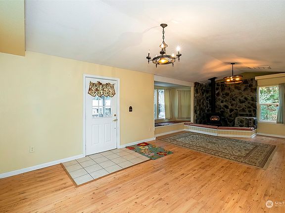 Great location for this over 2200 sq ft home with paved street at the front and the alley access at the back. Living rm at the entry includes a free-standing natural gas stove. Huge family room. Bedroom off the family rm with attached 3/4 bathroom & Laundry, 2nd 3/4 bath next to family rm., extra-large bedroom with vaulted ceiling and walk-in closet. Recreation rm with a large loft that would make a prefect home office. The kitchen has a large walk-in pantry & storage. Good size yard with play set and a detached storage building. Off street parking in the front of home and at the alley access. Close to shopping, schools, state and county parks. The Seattle ferries are an easy commute. NE Sherdan is dead-end street, no through traffic.