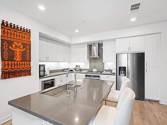 Welcome to Central Park West, Hudson enclave, a centrally located urban-style master planned community in the Irvine Financial District. This highly upgraded one level penthouse located on the fifth floor with court yard views featuring approximately 948 square feet of living space, 1 bedroom plus den / office, 1.5 bathrooms, 1 deck and 2 assigned parking spaces with elevator access. Home includes beautiful hardwood floors and custom shades throughout, high volume ceilings, open floor plan with multiple windows for natural light and energy-efficient LED recessed lighting. The modern, gourmet kitchen showcases European white cabinetry, quartz counter top with full back-splash, stainless steel appliances and a large center island. Spacious master bedroom with Berber carpet, large walk-in closet and master bath with enclosed shower. The energy-efficient package includes key less entry, Rukus wireless WiFi, ring video doorbell and App controlled thermostat. The 8,000 square-foot clubhouse / recreation center provides you with a bounty of amenities such as two Jr. Olympic saline pool, three outdoor Jacuzzi / spas, barbecue pavilion, state-of-the-art health fitness center, one outdoor half-basketball court and one pickle ball court. Live in Orange County’s newest, resort-style & recreational Oasis master planned community…The Central Park West