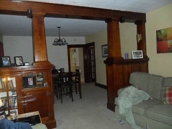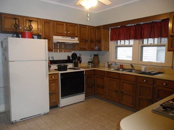 Cute covered front porch. Open LR/DR with beautiful woodwork and built-in storage areas. Kitchen has bar, 2 ceiling fans, dining area, and ample cabinet spaceincludes range and refrigerator. Large master bedroom. Open patio and fenced yard. Off-street parking in back. Laundry in basement. Gas heat/CA. All window coverings belong to tenant.