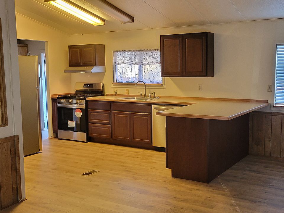 Manufactured home on quiet street in Kachina Village. Fresh paint, new flooring, new kitchen, new window coverings, fenced yard, storage unit, washer/dryer hookups. Very open, bright and spacious.