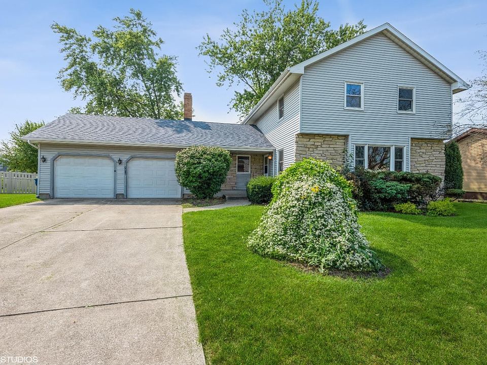 This SPACIOUS 2-story home in Schererville's desirable Casa Bella is ready for a new owner! The house has GREAT BONES and has been WELL MAINTAINED over the years - newer roof, windows, HVAC! Cute covered front porch WELCOMES YOU and connects house to garage. SPACIOUS FOYER with large closet. BRIGHT LIVING ROOM gets LOTS of natural light. FORMAL DINING ROOM. BIG EAT-IN KITCHEN could easily fit an island. Family room features floor-to-ceiling STONE FIREPLACE, VAULTED CEILING with beams, and slider to outdoor patio. MAIN FLOOR also features powder room and laundry room with added shower. MASTER SUITE has double closets, private bath with shower, and unique layout connecting to the 2nd bedroom for a fantastic office or nursery! FOUR total bedrooms upstairs, full bath, and HUGE linen closet. Unfinished HUGE DRY BASEMENT. BIG BACKYARD with beautiful mature trees. GREAT LOCATION close to schools, shops and restaurants. Bring your ideas for cosmetic updates and this could be your DREAM HOME!