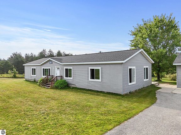 Welcome to your dream home in the heart of Northern, Michigan! Cadillac area and so much more. This exquisite double-wide modular home is set on a sprawling 4.6-acre lot, offering the perfect blend of suburban tranquility and country charm. Just a stone's throw away from the famous Boon Store, renowned for its world-famous Boon Cheese. This property provides both convenience and a taste of local culture. This well-maintained home features 3 bedrooms and 2 full bathrooms, providing ample space for your family. Recent upgrades include a brand new stove in 2024, new windows with tinted glass in 2023 for enhanced privacy and energy efficiency, a new roof in 2022 ensuring durability and protection, fresh new carpet in the main living room area in 2021, and a modern refrigerator installed in 2017. The large 3-car garage offers plenty of space for vehicles, storage, or a workshop. Both the front and back yards feature a comprehensive irrigation system, keeping your landscape lush and green all year round. The crawl space under the home is almost 5 feet tall, providing additional storage options. Experience the perfect combination of comfort and convenience in this charming Boon, Michigan home. Whether you're looking for a peaceful retreat or a family-friendly residence, this property has it all. Don't miss the opportunity to make this your new home sweet home!