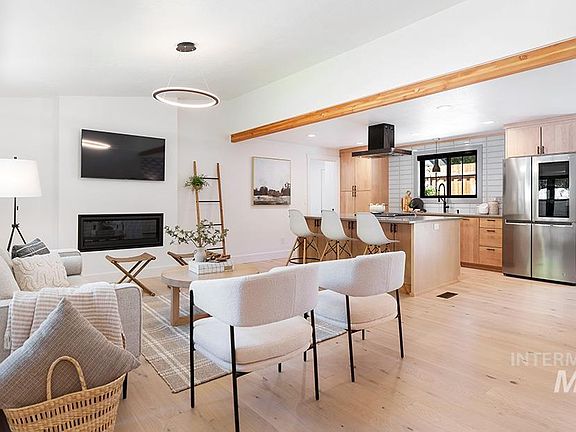 A stunning top-to-bottom remodel within a stone's throw to trail access and moments to the best of North End living. This single level Ranch has been completely revitalized with modern fashion and high end finishes to provide a turn-key opportunity. Located on a low-traffic cul-de-sac, the residence has a distinctive dark exterior with cedar accents. A light and airy feeling is carried indoors through crisp white walls & light oak hardwood while black Andersen® windows and hardware/fixtures create an artful contrast. Vaulted ceilings accentuate the openness of the great room concept, where a minimalist fireplace and wood beam elegantly define the living and kitchen spaces. Equipped with quality materials and appliances, the kitchen features soft-close cabinets with convenient pull-outs and a spice rack, smart stainless steel appliances, gray quartz countertops, and a striking large format tile backsplash extended to the ceiling. New roof in May 2024.