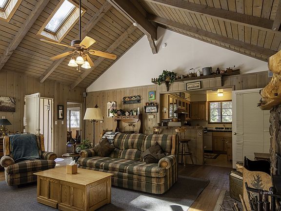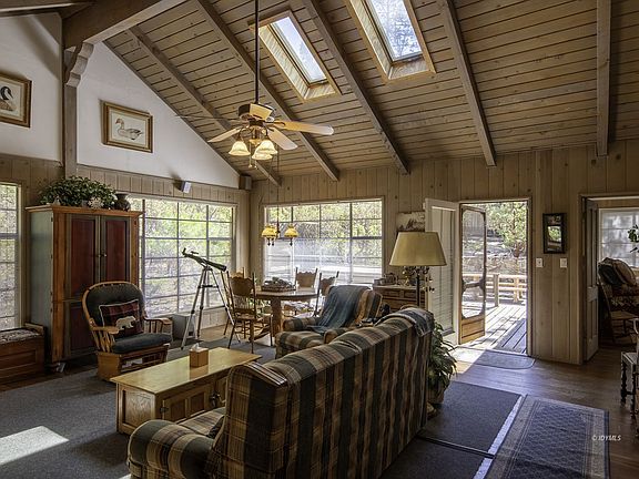 Vintage charm tucked away on premiere fully fenced lot in desirable Fern Valley location. Property has been a family mountain retreat for last 20 years. Enter the circular driveway with ample parking on either side of the cabin with an added parking spot at the entry. The main entrance off the mud room opens to the welcoming living room. Vaulted ceilings, large windows surrounding the living space & skylights make the heart of the home light, bright & warm. The stone fireplace has an airtight wood burning stove with a raw edge mantle made by local artisan. The back door leads to a private deck with jacuzzi & 2nd outdoor dining patio with views of Lily Rock. Charming kitchen with pine cabinetry & pantry. Small guest BR off living room with newly remodeled 3/4 bathroom. Primary bedroom is on opposite side with vaulted ceilings & a full bathroom; 50's tile in mint condition with corner cast iron tub. Stackable washer/dryer. Central heat/AC; upgraded panel; 200 amp main; set up to accommodate whole house generator. Partially furnished (minus personal items & family heirlooms). Enjoy stargazing at night & Lily Rock views by day in your private wooded sanctuary!