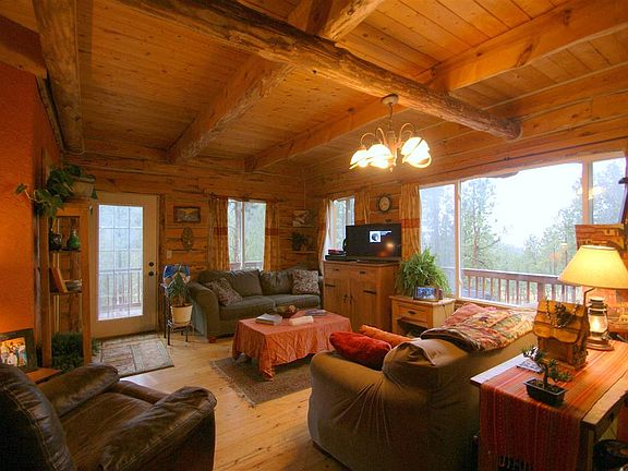National Forest land borders the entire back boundary of this 9.33 acre homesite, giving lots of privacy to your deck & the private hot tub. Custom built log home with full wrap-around deck, with French door access from the dining room and both ends of the living room. The main floor is all one large room, with a double-sided staircase to the second floor. A full bath and laundry complete the main floor; upstairs are the bedrooms and another huge bathroom. The whole house can be heated with the existing wood stove, but there is electric baseboard as well. A storage shed accesses off of the deck, and a lovely gazebo offers covered seating and relaxation at the front of the home. Children (and adults) will love the boardwalk that wends its way from the house into the woods, with benches along the way to stop and enjoy these beautiful Black Hills. A zip-line and play area offer hours of fun for the current children of the home.