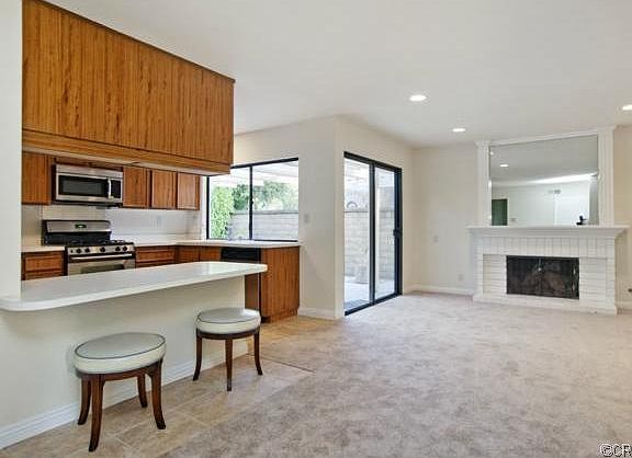 Beautiful corner cul?de?sac location in Laguna Hills. Living room features vaulted tongue and groove ceilings, marble fireplace and wood paneling. The kitchen complete with stone flooring, Frigidaire appliances and wood cabinets opens to the informal living room with brick fireplace. The four bedroom, two bath home also boasts new carpet, recessed lighting, mirrored closets, and two car garage. Enjoy the private rear yard with lush lawn, covered patio and roses. Close distance to freeways, restaurants, shopping, schools and parks. This home is a must see!