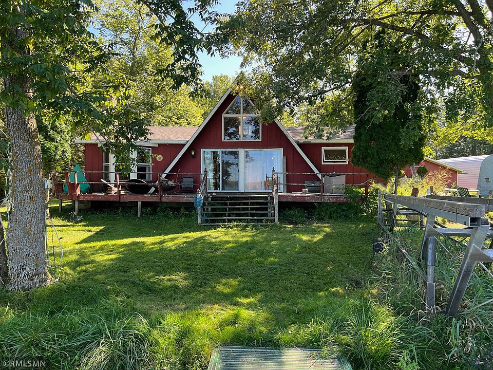 Great investment opportunity on prestigious Bay Lake for a handy man with vision. This home is right on the water's edge and would make a cute beach style cabin with wrap around deck. The level, oversized lot alone is worth checking out. Beautiful, level, green yard with trees along the lot lines for privacy and over 280 FEET OF LAKESHORE ON BAY LAKE. The yard offers plenty of space for a new septic system and plenty of room for other storage buildings as needed. Don't miss the panoramic sunrise views over Bay Lake. Property is being sold AS-IS but loaded with potential - finish on the inside or replace it with the lake house of your dreams! There is also an 8x12 storage shed and a 3-car garage (26x40) with concrete floor. Current owners used a weed roller around the dock and had a beautiful sandy area for swimming. This property has been loved and enjoyed for many generations and now it's time for a new family to bring their dreams and start making memories!!