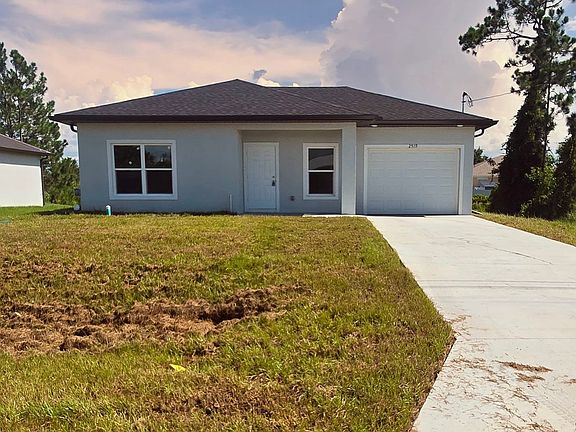 Welcome to a Brand New Construction-2//2/1 SW Lehigh Acres, a stunning new build nestled in the heart of Lehigh Acres, FL. This home boasts two spacious bedrooms, including a primary suite with a large, tiled shower en-suite, and two full bathrooms. The open floor plan features all tile floors throughout, enhancing the home's modern appeal. The eat-in kitchen is a chef's dream, complete with stainless steel appliances, granite counters, wood shaker cabinets, and a convenient pantry. The home also offers a washer and dryer hook up for your convenience. Step outside to a large backyard, perfect for outdoor activities or simply enjoying the Florida sunshine. The property also includes an open rear lanai, and a one-car attached garage. This home is situated on a large quarter acre lot, just a stone's throw away from downtown Lehigh and SR 82. As a bonus, this pet-friendly home comes with storm protection-impact windows for added safety. With its brand-new construction and cozy cottage vibe, this home is move-in ready and waiting for you to make it your own. Don't miss out on this great opportunity, one of the lowest priced new construction homes in the area. See it today and experience all the amenities Lehigh Acres has to offer.