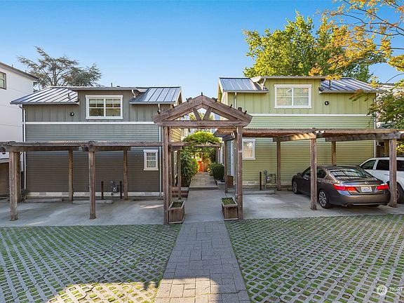 Welcome Home to this superb craftsman-influenced cottage nestled in a unique 6 home community. Excellent 2008 build, this 930 sq ft home lives large with a well thought out floor plan of indoor/outdoor living space on the main w/living, dining, kitchen, and 1/2 bath. Outside isa private fenced patio, deck and area the seller used for their dog run. Generous use of windows throughout. Vaulted ceilings create 2 spacious bedrooms, and stunning marble tiled spa-like bathroom on the 2nd floor. Enjoy endless (tankless) hot water on demand. Just in time for winter, you can enjoy the ambiance of a gas fireplace. Stone walkway, designated covered carport parking and an individual trash/compost/recycle stall. Inspection available.