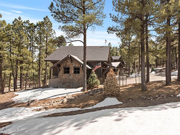 Looking for a newly-built home on acreage in a gated community in Flagstaff? Incredible estate in Forest Highlands, set upon 2.5 acres and backing Forest Service land, this Holdsworth-constructed home was finished in July 2020, and is full of natural light, vaulted ceilings in the great room, and plenty of thoughtful touches making it a rare mountain retreat. At 4,114 square feet, the split floor plan encompasses space for everyone to gather, in the inviting kitchen and bar area (complete with built-in Miele espresso bar, Scottsman ice maker, gas range, electric oven, quartz counters, wine room and filtered water), as well as a huge loft, perfect as a game or media room. There are four en-suite bedrooms, including a bunk room with custom built-in bunks.