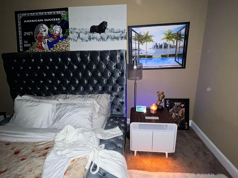 $1599 a month rental 3 bedroom 2 bathroom 1500 square ft. $2,000 deposit with first months rent 675 credit score or above (unless you have 3 months up front) No pets Rent includes: ALL UTILITIES: High speed WiFi , monitored alarm system, Water , trash , power (electrical) , cable , Netflix , and Amazon prime , yard maintenance FULLY FURNISHED LIKE A READY TO MOVE IN AIRBNB: Alarm system you can control with your phone (1 GC3 touch display panel ,2 doorbell cameras , 4 outdoor cameras , 2 door locks, 1 thermostat, 8 glass break detectors , 2 door sensors , 2 carbon monoxide sensors, 2 smoke detectors , 2 medical pendants, 2 key ring remotes, 2 motion detectors, 1 outdoor siren, 2 flood sensors 2 Sobro night stands (integrated with wireless charging , mini fridge , Bluetooth speaker , 2 outlets , 2 usb charging ports , and changing color lights on bottom and back ) 6 beds with extra pillows and sheets , 6 soft robes , a bunk bed , 2 luxury frames , 3 couches , a desk, a kitchen table with 3 chairs , 65 inch smart TV, 1 mounted 42 inch TV, 1 gold mirror dresser , 8 pictures , 2 shoe racks , brand new smart phone controlled washer and dryer , cabinet for laundry room , cabinet for bathroom , shower poles and curtains , 4 lamps , 3 rugs , lots of hangers , 2 lion statues , 3 chairs on the porch , 2 launch chairs A piano All kitchen supplies you would need , blender , toaster , coffee machine , orange juicer , pots , pans , plates , silverware , knife set , cutting boards , toaster oven, and lots of other miscellaneous , all cleaning supplies supplied Other things to note: brand new AC/heating unit , brand new roof , brand new stainless steel appliances (fridge , stove , microwave) brand new black granite tile in the kitchen and laundry room MOVE IN READY 1 year lease preferred No smoking. No Pets. One year lease preferred. All utilities included in the rent. Monitored security system, high speed wifi, electric, water, sewage, trash, all included. fully furnished