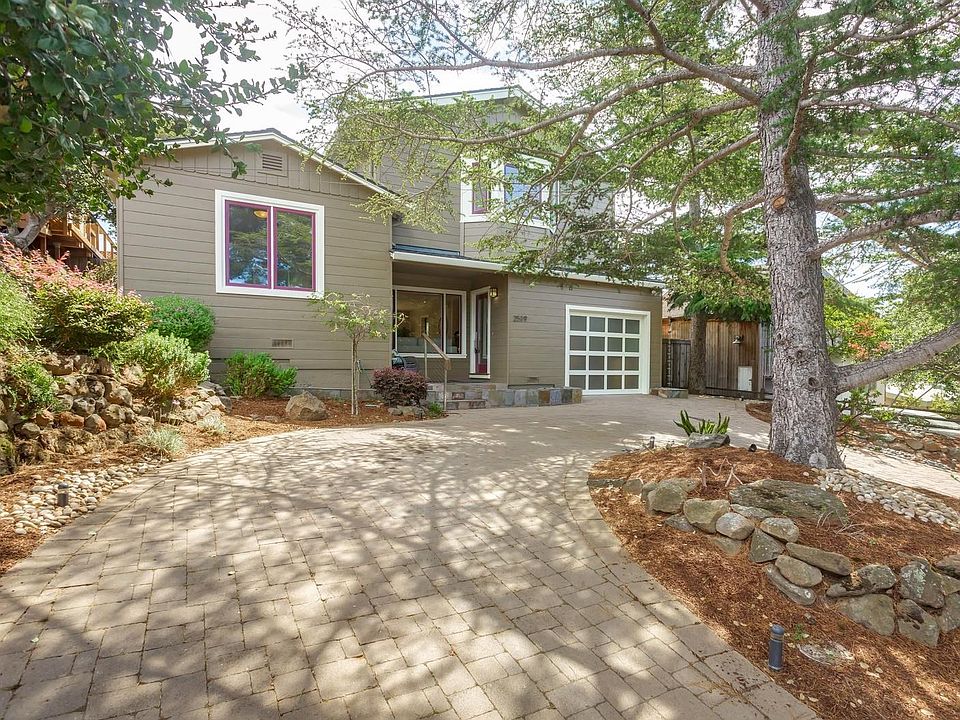 Welcome to 2519 Carmelita, ideally situated in the hills of Belmont-the heart of the Peninsula. This area once hosted vacationers from San Francisco & summer retreats began popping up on Belmont's bucolic hillsides to supply respite & relaxation as well as an escape from the cool city fog. This home, with its charming curb appeal & well-designed circular driveway, retains that feeling of being away for a weekend retreat, at the same time living serenely with contemporary amenities. A private mostly level rear yard landscaped to mimic a Sonoma homestead offers minimalistic gardens with walkways that gently give way to the name Carmelita with brown outcroppings of bedrock found in this area of Belmont. The expanded floorplan allows for privacy from the living areas & views from upstairs.This location is coveted for its beauty, seclusion, access to open space, & hiking trails. Not far is the Village Shopping Center which offers a variety of retailers, restaurants & popular gathering spots