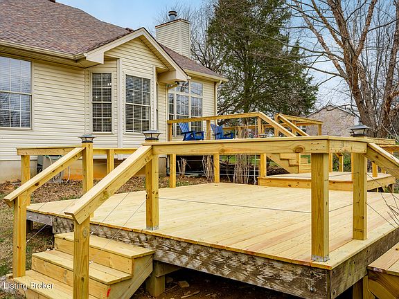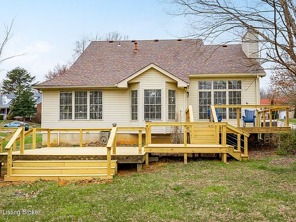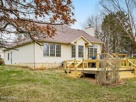 A spacious home with picturesque view of the 4th fairway on the Heartland Golf Club! This home features a master on the main level, two bedrooms upstairs with an additional play room and an office. Tiled foyer with a vaulted ceiling, formal dining with hardwood flooring, vaulted living room with gas fireplace, eat in kitchen with a bay window overlooking the golf course, breakfast bar, built in pantry and tile flooring. Master suite features huge picture window with view of the golf course, a walk in closet, jetted tub, separate shower and double vanity. Two large decks and a wonderful tree house for the kids round out the back yard space. Home is within commuting distance to Fort Knox, Louisville, and Elizabethtown.