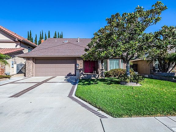 Wonderful two-story home with a large backyard in a nice and quaint neighborhood of Anaheim. Walking up you will notice the beautiful brick and flagstone masonry design of the exterior. Entering the home, you are greeted by a welcoming living room with vaulted ceilings, bay windows with great natural lighting, and a formal dining room. The open kitchen features granite counters with a bar top, a dishwasher, a cooktop, a built-in microwave, recessed lighting, tile flooring, and lots of cabinet space. The home was extended so you have an additional breakfast nook off the kitchen as well as an oversize family room. The large family room features a sideboard with granite counters and wet bar, tile flooring, a skylight, and a custom fireplace with a stone hearth. The first floor also features a downstairs bedroom with a connecting full guest bathroom. Upstairs you have the master bedroom with vaulted ceilings, mirrored closet doors, and a private office that could be turned into a walk-in closet. The master bathroom features dual sinks and vanity, and an enclosed full bathroom. The additional two bedrooms feature ceiling fans and carpet flooring and share a sizable Jack and Jill full bathroom. The relaxing and private backyard is ideal for entertaining guests under the large patio covering and has a small workshop in the back. All within a short distance to parks, restaurants, shopping, and Anaheim ARTIC Metrolink Station giving you quick and easy access to LA and San Diego.