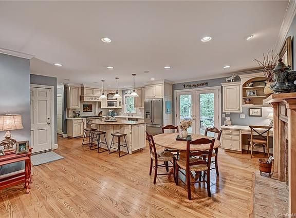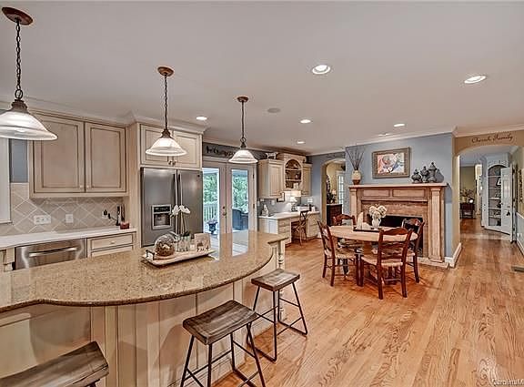 HEAVEN! This incredible estate home sits on a 1+ acre PRIVATE lot in desirable Providence Plantation! From the moment you enter, you will feel the warmth of this inviting home, and you will appreciate its unique craftsmanship. The Kitchen & Keeping Room area are spectacular - the Kitchen has cream cabinets, large island w/beautiful granite and bar seating, a chef's dream Thermador gas range/hood, tile backsplash and tons of counter space. Feel the warmth of the fireplace in the kitchen, or relax in the Keeping Room w/ a wet bar and built-in cabinets. Great Room is SO spacious, with it's own fireplace, built-ins, and lovely window seat. Create wonderful memories in the large dining room w/ batten board molding and fantastic chandelier. Main-level Owner's Suite w/ barn door over totally renovated bathroom! Private porch and deck overlooking water feature and woods! Basement with FP, stone hearth, family room, media room, full bath, tons of storage. So much to love & explore! Top schools!
