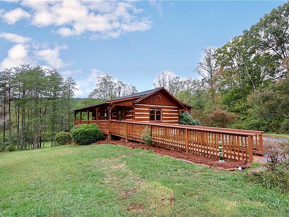 2 BD/2 BA wooden cute & cozy wooden cabin style ranch home in King! Located on over 18 acres with a creek. This house features a wheelchair accessible ramp; enclosed porch; rustic wood paneling in the dining area that opens up to the kitchen featuring an island w/ a built-in range cooktop; stone hearth in den; spacious bedrooms; & a beautiful stained glass window in the bathroom. If you are looking for main level living in Stokes County, then this is a must see!