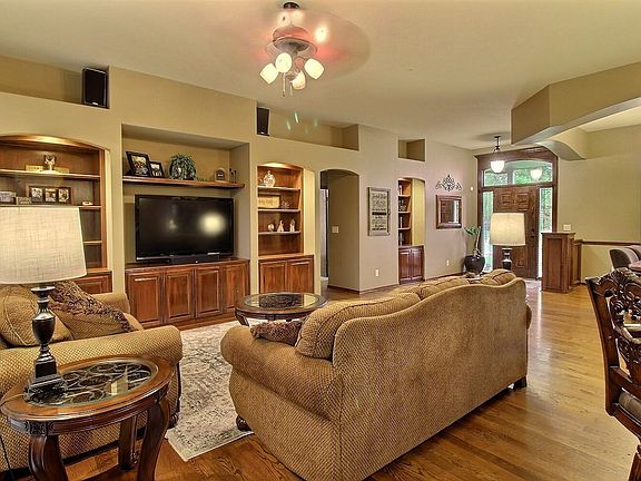 This stunning 5-bedroom, 3-bath ranch home is a true gem! The open floor plan seamlessly connects the upgraded hardwood floors, formal dining room, and eating bar, creating an inviting space for both everyday living and entertaining. The surround sound system, wired inside and out, ensures your favorite music or movies can be enjoyed throughout the home. The master suite is a luxurious retreat, featuring a soaker tub, oversized shower, and split vanities, offering both comfort and convenience. The finished basement is a versatile space with a cozy stone fireplace, two additional bedrooms, an office, and ample storage, perfect for guests or a growing family. Step outside to the covered deck and take in the beautifully landscaped, expansive yard. The saltwater pool is a highlight, providing a refreshing escape during the warmer months. This home truly has it all, combining elegance, functionality, and outdoor enjoyment.