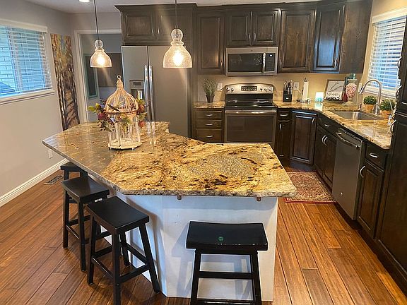 *See contingency at bottom Stunning home located on Highland Golf Course! Beautiful fully remodeled kitchen with granite countertops, hardwood floors, stainless steel appliances, all with views of the golf course through large sliding glass doors that lead out to a large deck. The back yard is partially fenced and boasts two Apple trees and a peach tree! Large and spacious living/family area has new carpet and ample windows! New paint throughout home. Wood fireplace in large dining area off of kitchen. Mud room and laundry upon entry through garage. Master bedroom is having new carpet installed and new lighting fixtures in dining. Central Air / new hot water heater & water softener. A must see! Buyers agents welcome *Appointment for showings please *contingent on current owners procuring new housing Call 208-206-8630 to make appointment for showing