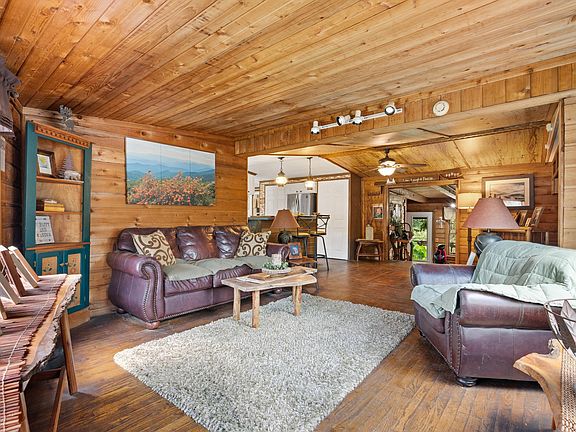 Rustic charmPrivate wooded settingSpacious deckBright kitchenCovered porchWarm wood accentsPeaceful natural surroundings