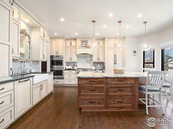 Absolutely stunning five bedroom home on a quiet cul de sac in central Fort Collins' popular Dakota Ridge neighborhood! Walk into this home and you'll immediately feel the warmth and comfort of a carefully redesigned and beautifully updated home with premium finishes and excellent craftsmanship. The main level boasts a wide open and highly functional great room with real wood floors, high-efficiency wood burning fireplace and sprawling room to relax and entertain. Step into the gourmet kitchen with high-end soft-close cabinetry, huge granite island, enviable stainless appliances (including two dishwashers), beautiful lighting features and tons of storage. Move to the large all-season sun-room and entertainment area with an overhead door leading to the outdoor bar and large space for gatherings. Head up the staircase, accentuated with cast-iron railing, to the second level where you will find four bedrooms, including the gorgeous primary suite with wood flooring in the main area. The five piece primary bath is amazing, with radiant heated floor, real cast-iron soaking tub, large shower, double vanities, and a walk-in closet. The finished basement adds another living space with a rec area, wet bar, gas fireplace and another bed and bath. The classy and attractive "urban farm" backyard provides raised garden beds, top notch irrigation system, chicken coop, and plenty of space to add your own hobby area. This home was completely renovated five years ago, including a brand new high-efficiency HVAC system, full house water filtration system, new energy efficient windows, new light fixtures and hardware, new roof and interior/exterior paint. This home is simply unmatched and move-in ready; an incredible oasis right in the middle of town. Close to schools, shopping, restaurants and all this great community has to offer. No HOA and No metro district.