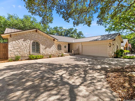 Newly UPDATED! Tucked beneath a canopy of mature trees, this 3-bedroom, 2-full and 2-half baths single-story home blends natural charm with city convenience. Featuring a metal roof, stone fireplace, new granite kitchen counter tops and no carpet throughout. The spacious circular driveway and front landscaping create strong curb appeal, but the true highlight lies in the serene backyard oasis. Featuring, thoughtfully designed landscaping and a tranquil water feature making the outdoor space a peaceful escape for morning coffee or evening gatherings. Inside, the living room centers around a stone fireplace, adding warmth and character to the heart of the home. The kitchen and bedrooms offer space and a layout that can adapt to your lifestyle. Enjoy a location that keeps you connected - just minutes from HEB, dining, parks, and major roads including 281, 1604, and Wurzbach Parkway. Whether you're searching for a peaceful place to unwind or a great neighborhood, this home offers the best of both. Create your perfect retreat in a prime San Antonio setting.