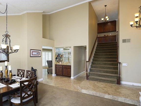 This light and bright, 4 bedroom, 3 bath pool home has it all. Dramatic entry through the custom leaded glass door opens to the formal living room with vaulted ceilings, crown molding, wet bar and 18" travertine tile flooring. Custom window treatments in every room. Gourmet Kitchen boasts granite counters, refinished cabinets, stainless steel appliances, travertine backsplash, and recessed lighting. Spacious family room with fireplace encased with custom mantle. First floor also has a bedroom perfect for an office, and full bathroom. Wide staircase with upgraded banister leads to the second floor. Large master suite with vaulted ceilings, walk in closet, and designer ceiling fan. Gorgeous master bathroom with granite countertop, tile flooring and upgraded cabinets. Secondary bedrooms with mirrored closets, plantation shutters, window seats and ceiling fans. Step outside to the spacious backyard with covered patio, mature landscaping, and beautiful pool that is perfect for entertaining. This home is also equipped with a large 3-car garage with storage cabinets and 220 volt electric car charger built in. Not to mention ... RV parking!! Close to shopping, schools, entertainment and Orange County, this home is a must see! Don't miss out ... call for your personal tour today!