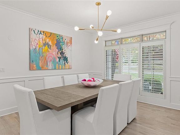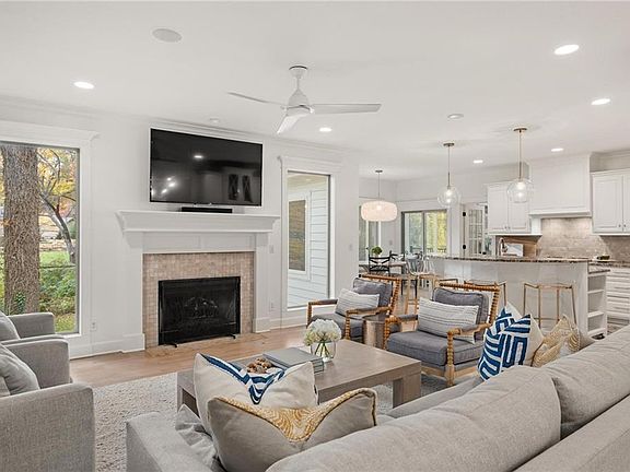 Welcome Home to this stately residence nestled on a generous & private lot in the heart of Old Leawood. This 1.5-story masterpiece boasts lofty ceilings, a sought-after modern layout, and an abundance of natural light. The open floorplan harmoniously marries style and convenience, making it an ideal setting for entertaining and gathering.