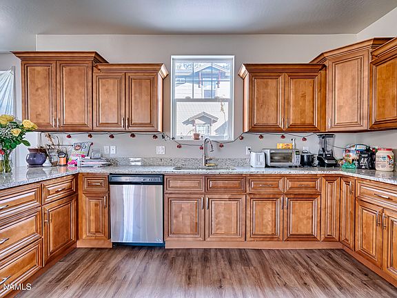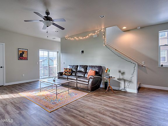 Beautiful end unit with an oversized 2 car garage, upgraded interior with granite counters, stainless appliances, laminate flooring in living areas and carpet in bedrooms. This townhome is centrally located, 2 miles from NAU, near downtown and with easy access to I-40 it is the perfect location. All offers will be reviewed 2/25 afternoon.
