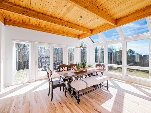 This NEWLY RENOVATED 7-bed, 4.5-bath, 6034 fin sq ft home features PANORAMIC MOUNTAIN VIEWS, a THREE STORY GREAT ROOM, 3 picturesque fireplaces, 9.48 FENCED-IN ACRES consisting of sunny surrounding yard space and private backyard woods, and a FIRST FLOOR PRIMARY SUITE with private study/office nook, cathedral wood-beam ceilings, two walk-in closets, and an ensuite primary bath with free-standing soaker tub, separate vanities, unlimited countertop space, a skylight, and luxury glass shower with duo-shower heads! Prepare meals in the all-white, brand new, LUXURIOUS CHEF'S KITCHEN complete with an oversized QUARTZ ISLAND, double ovens, 5-burner gas cooktop, coffee bar nook, chic blue tile backsplash, walk-in pantry, and MORE! Entertain friends in the FINISHED WALK-OUT BASEMENT REC ROOM, complete with a pool table and mini bar, the TWO-TIER BACK DECK, and/or around the BUILT-IN SIDE PATIO FIRE PIT - the options are endless! Utilize the basement's 7th bedroom as a PRIVATE HOME OFFICE alongside the ADDITIONAL IN-LAW BED/BATH option! IDEALLY LOCATED within Western Albermarle High School district, just 3 minutes from Grace Vineyard and downtown Crozet and 15 minutes from Charlottesville/UVA! Open House Sun 3/19 12-2PM.