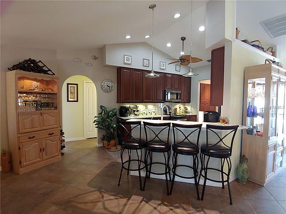 - Interior Features: Ceiling Fans(s), Vaulted Ceiling(s), Walk-In Closet(s), Window Treatments, Open Floorplan, Solid Wood Cabinets, Eating Space In Kitchen, Stone Counters, Thermostat