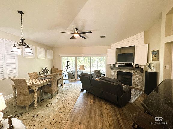 Coastal living at its finest! This move-in-ready, single-story home is located in the gated community of The Villages of Mariner Lakes in Orange Beach and includes DEEDED private beach access. Offering two bedrooms, two baths, plus a dedicated office that could serve as a third bedroom, the home combines comfort and flexibility with a light and open layout. Inside, you’ll find vaulted ceilings, stylish finishes, and thoughtful updates throughout. The spacious primary suite features a large closet and peaceful lake views, while the main living area opens to a screened-in patio and adjacent covered grilling area—for relaxing or entertaining. This property was extensively updated in 2021 with a Fortified roof, all new appliances, HVAC system, flooring, lighting, decorative accents, and has hurricane shutters for peace of mind. The HOA makes ownership easy with low-maintenance living that includes lawn and sprinkler care plus termite protection.Residents enjoy resort-style living with amenities such as a sparkling pool, tennis and pickleball courts, a renovated clubhouse with kitchen and fitness center, and beautifully maintained lakes/common areas. All this, just minutes from the sugar-white Gulf beaches, dining, shopping, and entertainment. The home will be sold furnished (EXCEPT for the primary bed's mattress/box spring, some personal items, and art pieces), to include the golf cart and HOA dues paid until the end of 2025, with an acceptable offer. Whether you’re searching for a full-time residence, vacation retreat, or investment property, this hidden gem in Orange Beach checks all the boxes. Schedule your private showing today! Buyer to verify all information during due diligence.